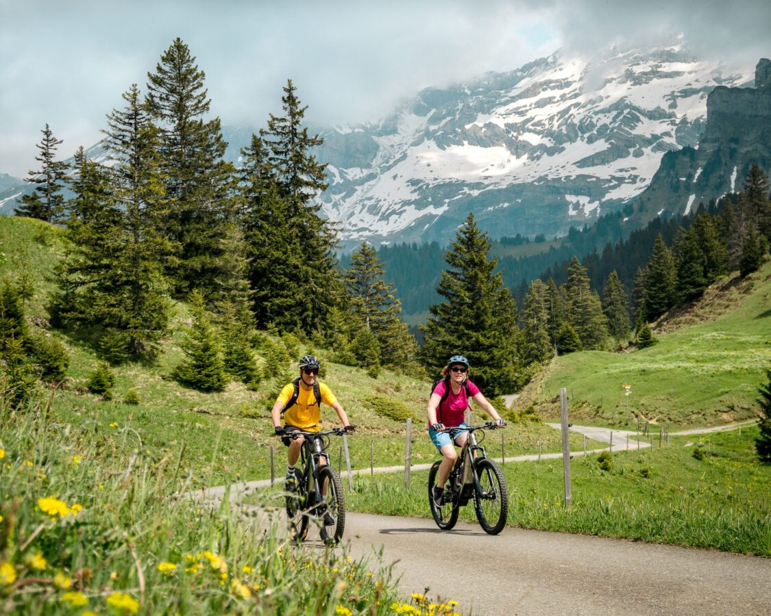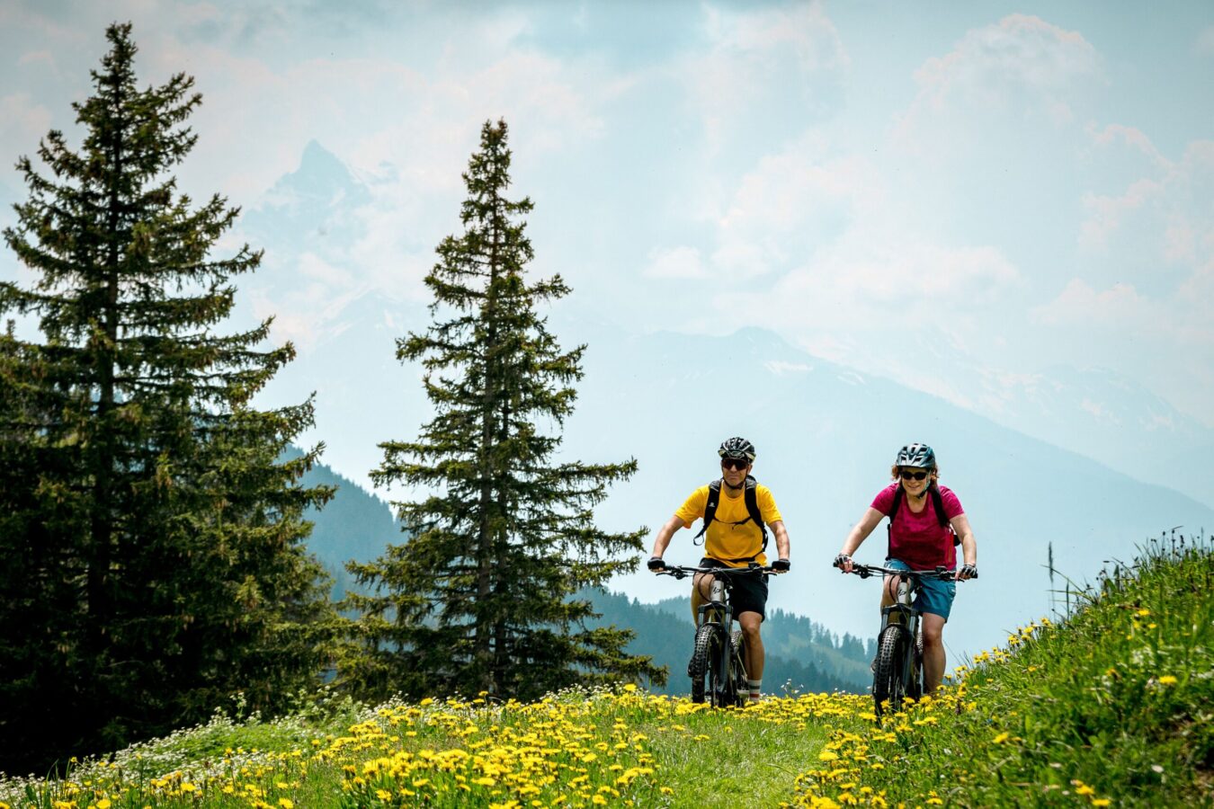 VTT, e-bike, vélo de descente, pumptrack : grâce à un réseau d’itinéraires balisés, des infrastructures de qualité et des bornes de recharge pour vélos électriques réparties sur l’ensemble du territoire, chaque pratique se vit pleinement au cœur de panoramas grandioses, face aux Dents du Midi, au Grand Muveran et jusqu’au Mont-Blanc.
